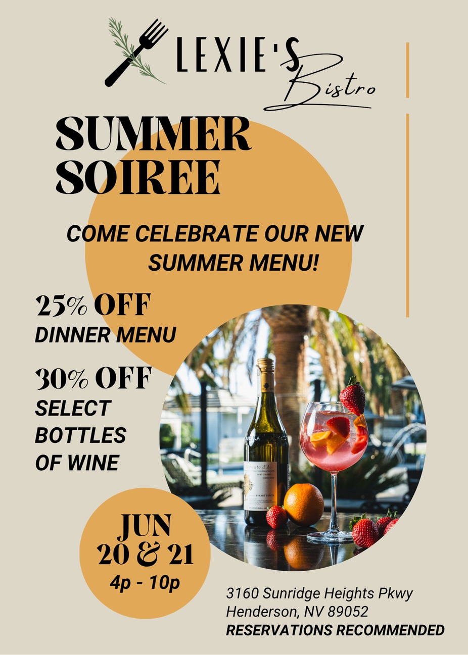 Live music, special dinners, trivia nights, and more. There's always something happening at Henderson's favorite neighborhood bistro.